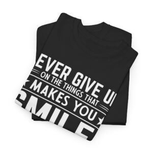 • Never Give Up on the Things That Make You Smile Motivational Graphic T-Shirt Funny Mens T-Shirts Novelty t shirts Joke t-shirt tee Top